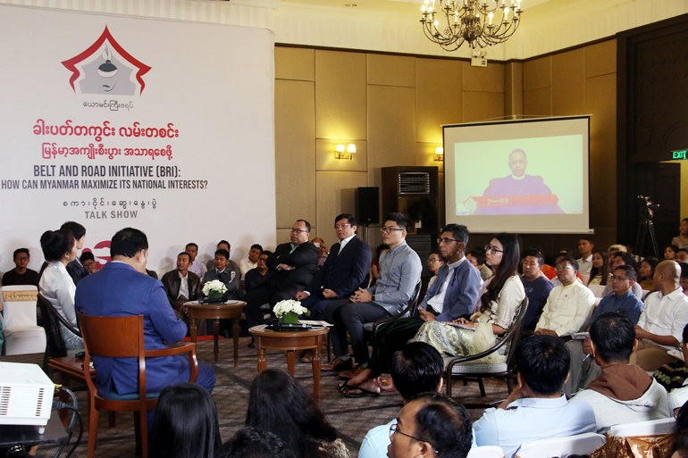 A talk show “Belt and Road Initiative (BRI): How can Myanmar maximize its national interests?” which is a round table discussion on the future of Myanmar organized by Institute for Strategy and Policy – Myanmar, participated by the experts and professionals was held at Hilton Hotel, Mandalay on November 18.