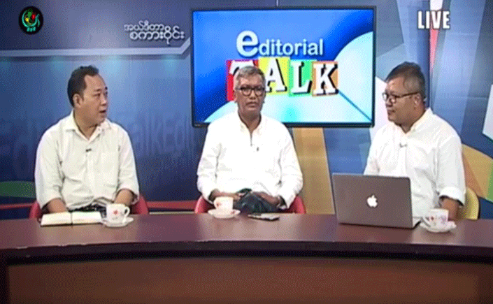 31 Oct 2017 Broadcast • Latest Notes & Updates • Media Room ၂၀၁၇ ခုနှစ်က ငြိမ်းချမ်းရေးနှစ်ဆိုတာ ဖြစ်လာမလား ” ငြိမ်းချမ်းရေး ဘယ်လောက်နီးပြီလဲ၊ ဘာတွေလုပ်ဖို့ကျန်သေးလဲ” အစရှိသဖြင့် ငြိမ်းချမ်းရေး ဖြစ်စဉ်နှင့် ပတ်သက်သော အယ်ဒီတာစကားဝိုင်း အစီအစဉ်ကို အောက်တိုဘာ ၂၈ ရက်တွင် DVB သတင်းဌာနက ထုတ်လွှင့်ခဲ့သည်။ အဆိုပါ အစီအစဉ်၌ The Myanmar Quarterly မဟာဗျူဟာနှင့် မူဝါဒလေ့လာရေး ဂျာနယ်မှ အယ်ဒီတာ ကိုနေထွန်းနိုင်လည်း ပါဝင် ဆွေးနွေးသည်။ စကားဝိုင်း အပြည့်အစုံကို အောက်ပါ ဗီဒီယိုဖိုင်တွင် ကြည့်ရှုနိုင်ပါသည်။ Source – DVB TV News