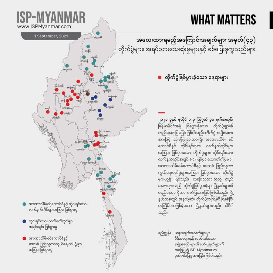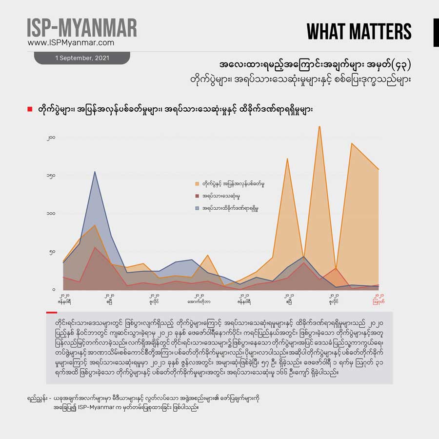 မြန်မာနိုင်ငံမှာ စစ်အာဏာသိမ်းပြီးနောက်ပိုင်း ဖြစ်ပွားလာတဲ့ တိုက်ပွဲအခြေအနေနဲ့ အကျိုးဆက်တွေ အပါအဝင် တိုင်းရင်းသားဒေသတွေမှာ ဖြစ်ပွားနေတဲ့ တိုက်ပွဲတွေ၊ အရပ်သား ထိခိုက်သေဆုံးမှုတွေနဲ့ စစ်ဘေးရှောင်ဒုက္ခသည် အခြေအနေတွေကိုလွတ်လပ်တဲ့ သတင်းမီဒီယာတွေ၊ အထူးသဖြင့် တိုင်းရင်းသား သတင်းဌာနတွေရဲ့ မြေပြင် အခြေအနေ ဖော်ပြချက်တွေအပြင်၊မြန်မာနိုင်ငံဆိုင်ရာ ကုလသမဂ္ဂ လူသားချင်းစာနာမှုဆိုင်ရာ ညှိနှိုင်းရေးရုံး (UNOCHA Myanmar) လို ကုလသမဂ္ဂဆိုင်ရာ အဖွဲ့အစည်းတွေ၊ အခြား လွတ်လပ်သော ပြည်တွင်း ပြည်ပအဖွဲ့အစည်းတွေရဲ့ မှတ်တမ်း၊ အစီရင်ခံစာ စတာတွေနဲ့လည်း တွဲဖက်လေ့လာနိုင်ပါတယ်။