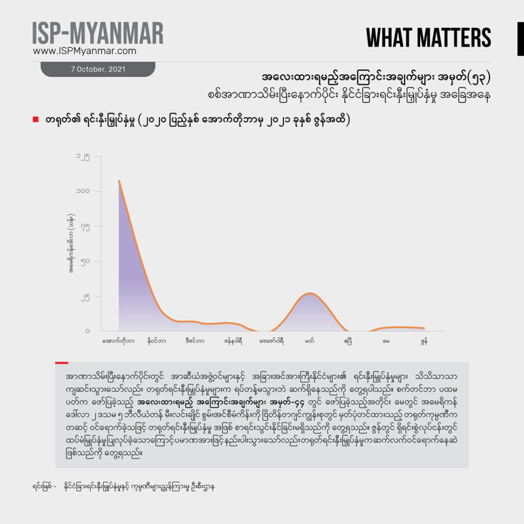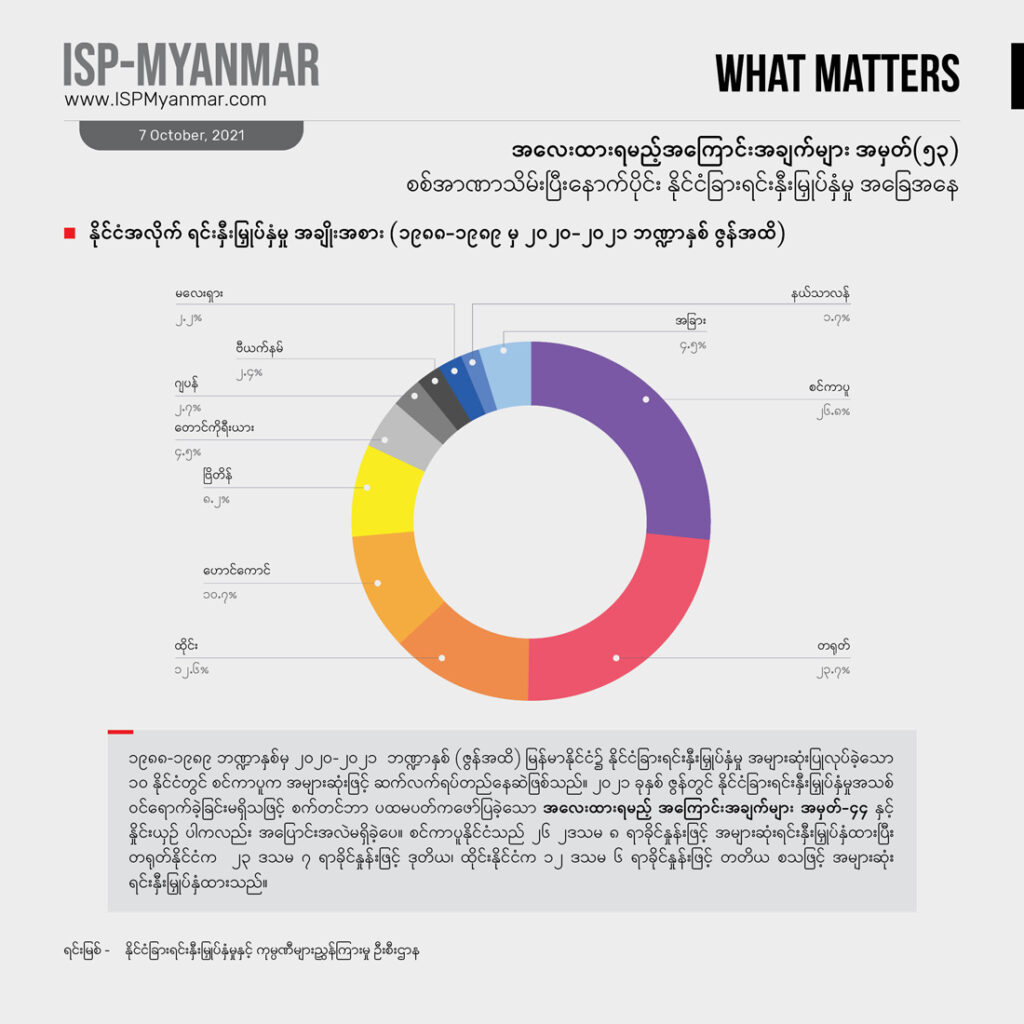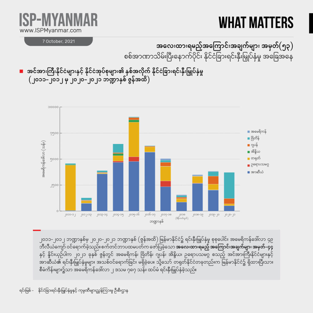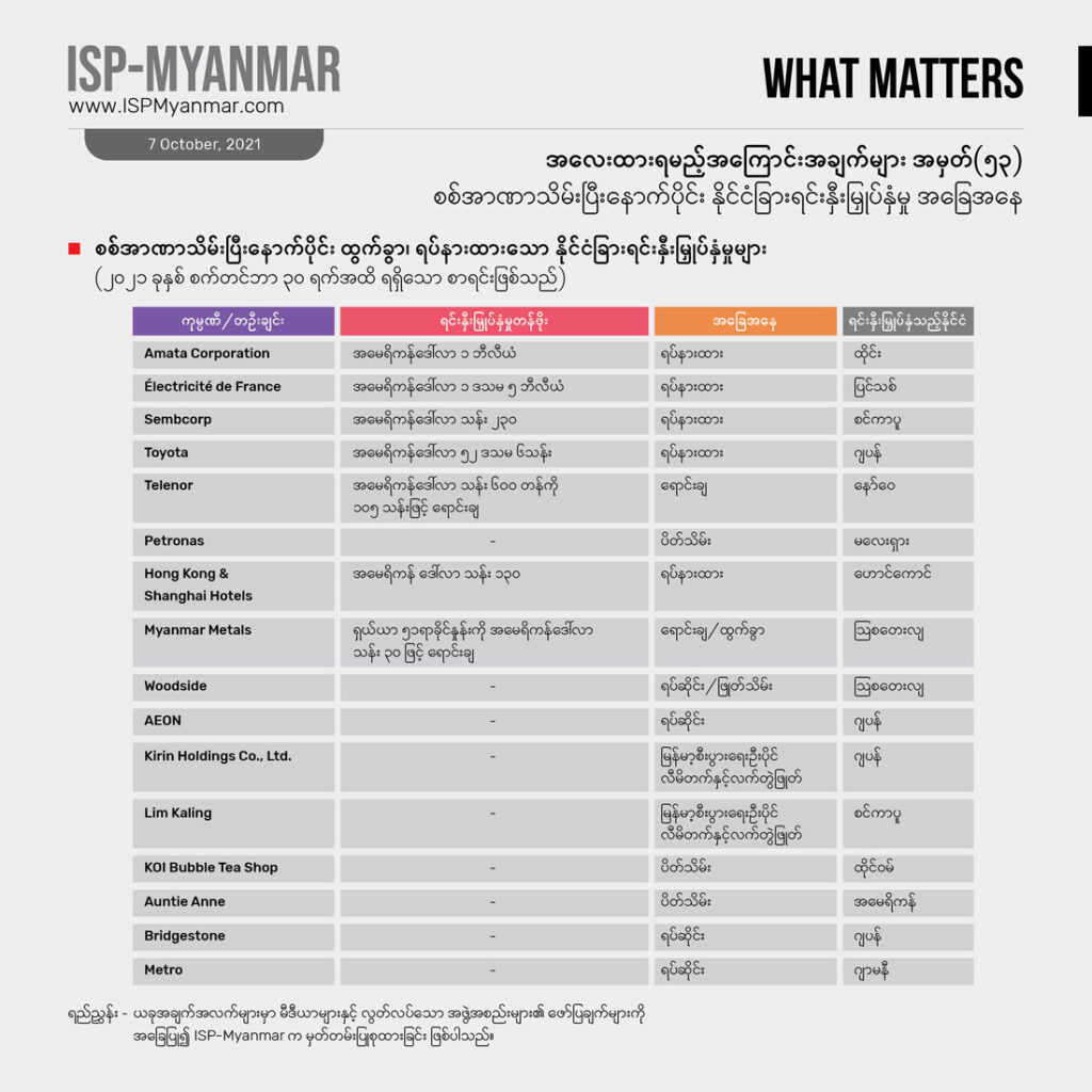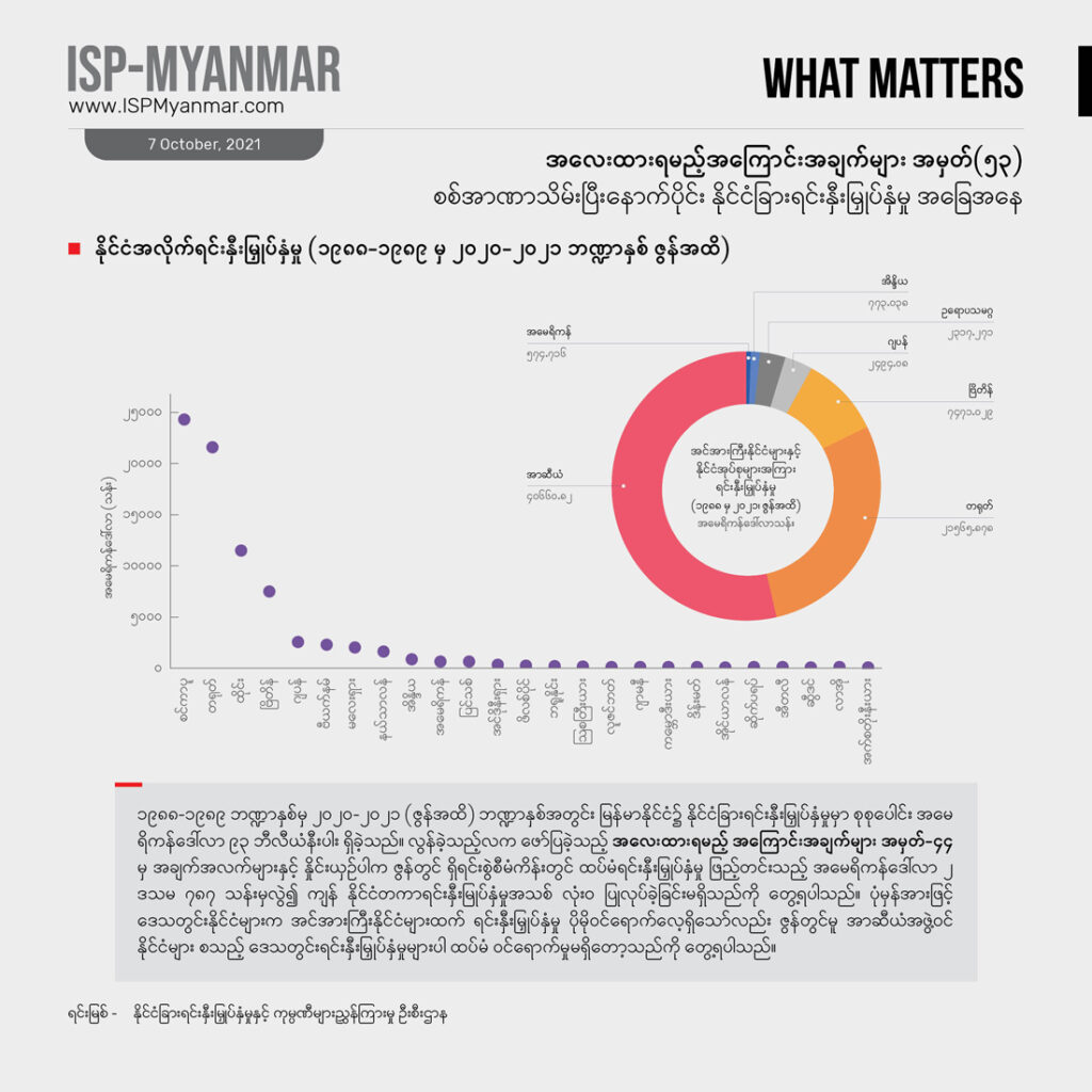 နိုင်ငံခြား ရင်းနှီးမြှုပ်နှံမှုဟာ ဖွံ့ဖြိုးဆဲနိုင်ငံတွေအတွက် အရေးကြီးတဲ့ စီးပွားရေး ဒေါက်တိုင်တခု ဖြစ်ပါတယ်။ ဒါပေမဲ့ နိုင်ငံခြားရင်းနှီးမြှုပ်နှံမှုတိုင်းက စီးပွားရေး ဖွံ့ဖြိုးတိုးတက်မှုကို အာမခံ မပေးနိုင်ပါဘူး။ သယံဇာတ ခေါင်းပုံဖြတ်မှုကို အခြေခံတဲ့၊ သဘာဝပတ်ဝန်းကျင်ကို အလေးမထားတဲ့၊ လူ့အခွင့်အရေးကို လေးစား လိုက်နာမှု မရှိတဲ့၊ ဒေသခံ ပြည်သူလူထုရဲ့ ဘဝ တိုးတက်မှုတွေကိုထောက်ပံ့မှု မပေးနိုင်တဲ့ ရင်းနှီးမြှုပ်နှံမှုတွေ ကြောင့်လည်း တိုင်းပြည်ဟာ ပိုမို ချွတ်ခြုံကျပြီး ပြည်သူတွေရဲ့ ဘဝကို ဆင်းရဲတွင်းပိုနက်စေပါလိမ့်မယ်။ ဒီလို အဖြစ်အပျက်မျိုး စစ်အစိုးရအဆက်ဆက် မြန်မာနိုင်ငံမှာ ကြုံခဲ့ကြရ ပြီးပါပြီ။ တခါ မြန်မာနိုင်ငံမှာဘယ်နိုင်ငံတွေက ရင်းနှီးမြှုပ်နှံမှုတွေ ပြုလုပ်နေသလဲ၊ ဘယ်လို ရင်းနှီးမြှုပ်နှံမှု အမျိုးအစားတွေ အဓိက ဝင်ရောက်နေသလဲ ဆိုတာဟာ လက်ရှိ နိုင်ငံရေး အကျပ်အတည်းအတွင်း နိုင်ငံတကာပါဝင်မှုကို နားလည်ဖို့ အထောက်အပံ့ ဖြစ်စေပါတယ်။ ဒါ့အပြင်နိုင်ငံခြားရင်းနှီးမြှုပ်နှံမှုဟာ မြန်မာနိုင်ငံရဲ့ ရေရှည် စဉ်ဆက်မပြတ် ဖွံ့ဖြိုးတိုးတက်ရေးနဲ့ ပြည်သူ လူထုတွေရဲ့ နေ့စဉ် ဘဝတွေကိုပါတိုက်ရိုက် သက်ရောက်မှုရှိတာကြောင့် အာဏာသိမ်း စစ်ကောင်စီအနေနဲ့ ဘယ်လို ရင်းနှီးမြှုပ်နှံမှုတွေကို အတည်ပြုနေသလဲ ဆိုတဲ့အပေါ် မျက်ခြေမပြတ် ရှိနေဖို့ အရေးကြီးပါတယ်။ အထူးသဖြင့် အခုလို သတင်းအချက်အလက် ဂေဟစနစ် ပျက်စီးနေချိန်မှာ စစ်ကောင်စီက အတည်ပြုလိုက်တဲ့ စီမံကိန်းတွေ၊ ခွင့်ပြုလိုက်တဲ့ ရင်းနှီးမြှုပ်နှံမှုတွေက ပွင့်လင်း မြင်သာမှုရှိသလား၊ သက်ရောက်မှုဘယ်လိုဖြစ်နိုင်သလဲ စတဲ့ ကိစ္စရပ်တွေအတွက် နိုင်ငံခြား ရင်းနှီးမြှုပ်နှံမှုတွေနဲ့ ပတ်သက်တဲ့ အချက်အလက် ကိန်းဂဏန်းတွေကအလေးထား စောင့်ကြည့်စရာ ဖြစ်ပါတယ်။