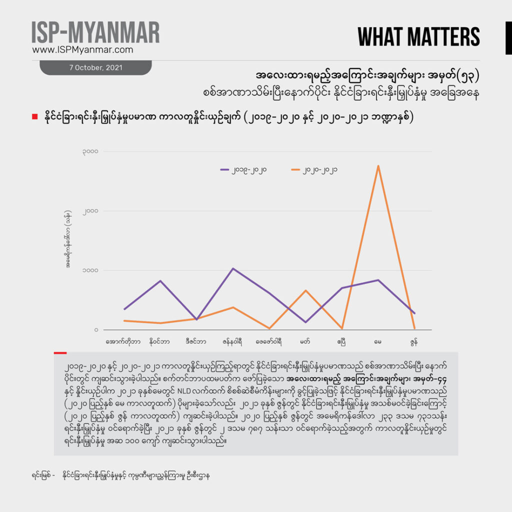အာဏာသိမ်းမှုရဲ့ နောက်ဆက်တွဲ အကျိုးဆက်တွေနဲ့ ကိုဗစ် ကပ်ရောဂါကြောင့် ဖြစ်ပွားခဲ့တဲ့ စီးပွားရေး ဆုတ်ယုတ်မှုတွေရဲ့ပေါင်းစပ်မှုကြောင့် အခုနှစ်အတွင်း မြန်မာနိုင်ငံရဲ့ ကဏ္ဍအားလုံးမှာ ဖွံ့ဖြိုးမှု နှေးကွေးသွားမယ် လို့ စက်တင်ဘာ ဒုတိယပတ်မှာအာရှ ဖွံ့ဖြိုးရေးဘဏ် (ADB)က ထုတ်ပြန်ခဲ့တဲ့ “ ဖွံ့ဖြိုးမှုညွှန်းကိန်းများ ကြိုတင်ခန့်မှန်းမှု” အစီရင်ခံစာမှာ ခန့်မှန်းပါတယ်။မြန်မာနိုင်ငံရဲ့ ဂျီဒီပီ တိုးတက်မှုနှုန်းဟာ ကျန်တဲ့ အာဆီယံ နိုင်ငံတွေနဲ့ နှိုင်းယှဉ်ရင် ဆိုးဆိုးရွားရွားပဲ အနုတ်လက္ခဏာ ပြနေပါတယ်။ ဒါ့အပြင် အမေရိကန် ဒေါ်လာဈေး သိသိသာသာ မြင့်တက်ပြီး ငွေကြေး ဖောင်းပွမှုနှုန်းက ဆက်လက်မြင့်တက်နေမယ်လို့ADB အစီရင်ခံစာက သုံးသပ်ပါတယ်။ ၂၀၂၁ ခုနှစ် ဘဏ္ဍာရေးနှစ်ရဲ့ ပထမနှစ်ဝက်မှာ နိုင်ငံခြား ရင်းနှီးမြှုပ်နှံမှု ၅၄ ရာခိုင်နှုန်း ကျဆင်းခဲ့ပြီး နိုင်ငံရဲ့ အခြေအနေ မတည်ငြိမ်မှု တွေကြောင့် ၂၀၂၂ ခုနှစ်အတွက် အလားအလာကိုတောင် ADB က ကြိုတင် ခန့်မှန်းနိုင်ခြင်း မရှိခဲ့ပါဘူး။