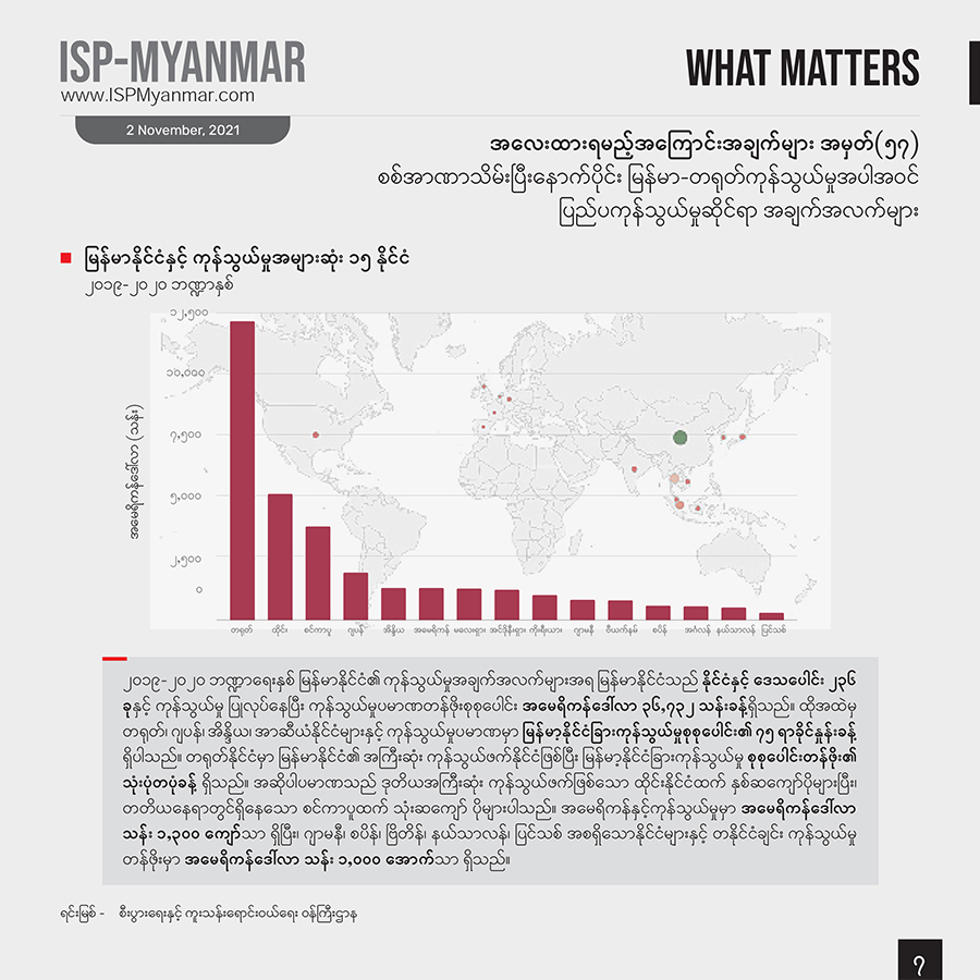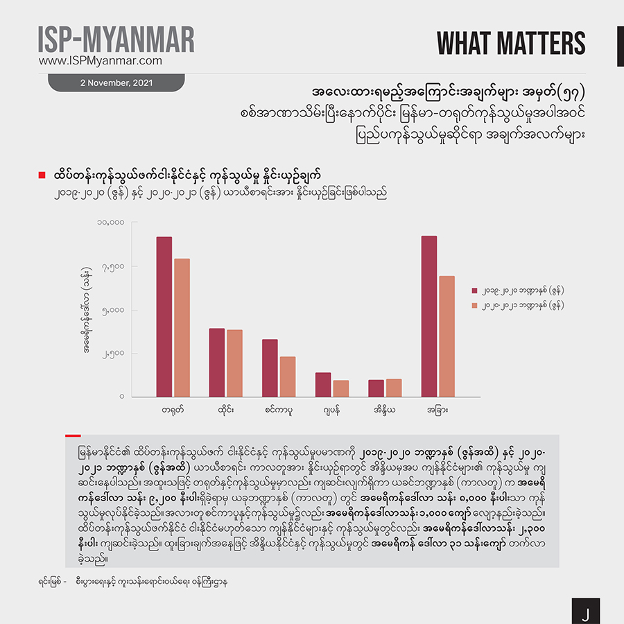 ပိုဆိုးတာက အခုအချိန်မှာ ကိုဗစ်-၁၉ တတိယလှိုင်းရဲ့ ရိုက်ခတ်မှုကို နိုင်ငံတဝန်း ပြင်းပြင်းထန်ထန် ရင်ဆိုင် နေရတာကြောင့်စီးပွားရေး၊ လူမှုရေး ထိခိုက်မှုတွေဟာ ခန့်မှန်းထားတာတွေထက် ပိုပြီး ဆိုးနိုင်ခြေ ရှိပါတယ်။ အာဏာသိမ်းမှုအပြီးမှာ ဖြစ်ပွားခဲ့တဲ့စီးပွားရေး အကျပ်အတည်းတွေနဲ့ အနောက်နိုင်ငံတွေရဲ့ စီးပွားရေး ပိတ်ဆို့ အရေးယူမှုတွေက မြန်မာနိုင်ငံရဲ့ ပြည်ပ ကုန်သွယ်မှုအပေါ်မှာ ဘယ်လို သက်ရောက်မှုတွေရှိမလဲ ဆိုတာဟာ မြန်မာနိုင်ငံရဲ့ စီးပွားရေးနဲ့ ဒီမိုကရေစီ ပြုပြင်ပြောင်းလဲရေးအတွက်အရေးပါပါတယ်။ ဒါ့အပြင် စီးပွားရေး ကိန်းဂဏန်းတွေဟာ ပြည်ပနိုင်ငံတွေရဲ့ နိုင်ငံရေးနဲ့ အကျိုးစီးပွား စဉ်းစားချက်တွေကို များစွာ ထင်ဟပ်လျက်ရှိတာကြောင့် မြန်မာနိုင်ငံရဲ့ ဒီမိုကရေစီရေးကြိုးပမ်းမှုမှာ ပြည်ပနိုင်ငံတွေရဲ့ အခန်းကဏ္ဍကို ပိုပြီးထဲထဲဝင်ဝင်နားလည်စေဖို့ အထောက်အပံ့ ဖြစ်စေမှာ ဖြစ်ပါတယ်။